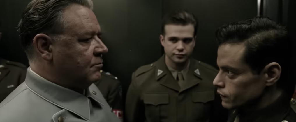 O longa, aliás, poderia se chamar “O nazista e o psiquiatra”, pois é baseado no livro com este nome, de Jack El-Hai. E em 80% do seu tempo retrata exatamente a relação entre os dois personagens. O psiquiatra americano Douglas Kelley (Malek) é encarregado de determinar se a cúpula nazista apreendida no fim da Segunda Guerra está apta a ser julgada por seus crimes de guerra. Durante sua missão, Kelley se encontra em uma disputa intelectual com o braço direito de Hitler, o segundo na hierarquia nazista, Hermann Göring (Crowe).
