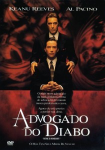 Está aí um filme que eu gosto muito. Advogado do Diabo está certamente entre os meus cinco prediletos. Tem uma história diferente, um ritmo ideal e ótimas atuações, além de surpreender. Mais: é tenso, grandioso, assustador e reflexivo. Evoca discussões sobre caráter do ser humano, livre arbítrio, vaidade, cobiça e honestidade. É um filme que choca, faz parar para pensar. Produz uma reação.
